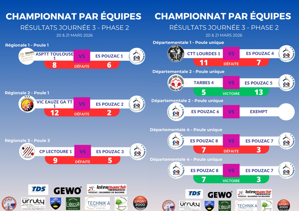 (D1 - Poule Unique) CTT Lourdes 1 11-7 ESP4