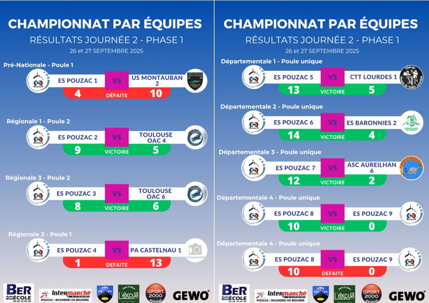 En Départementale 1, l'équipe 5 recevait l'équipe 1 du CTT Lourdes. Match sérieux dans l'ensemble et une victoire 13-5 qui donne un bon début de saison. Bravo à Poulpy (4+double), Joachim (4), Patricio (2+double) et Aurélien R (2).