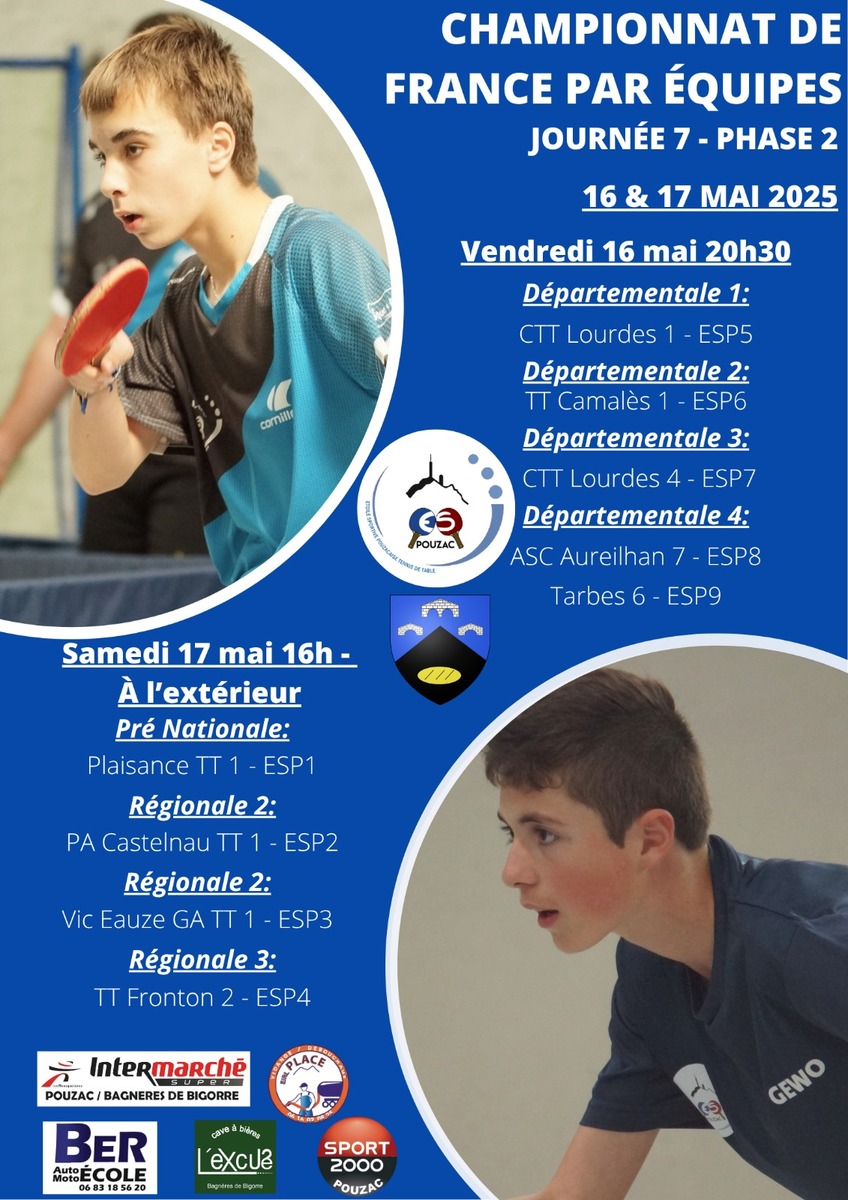 L'équipe 1 en Pré-Nationale, se déplacera chez le TT Plaisançois 1 (Plaisance du Touch, 31).