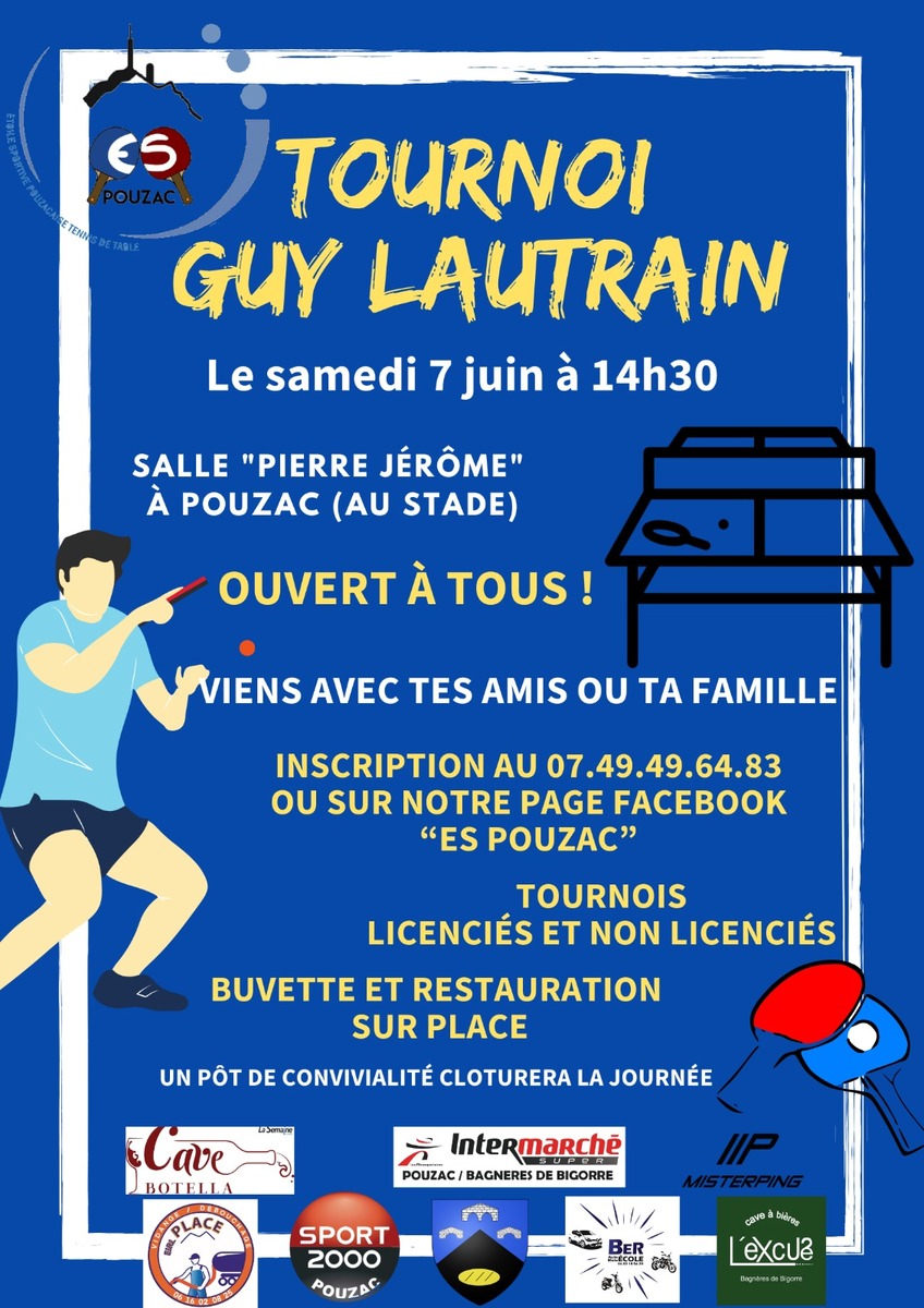 Ce tournoi, gratuit et ouvert à tous, a été créé pour la promotion du tennis de table et du club de l’ES Pouzac. Il aura lieu le 7 juin prochain après-midi.