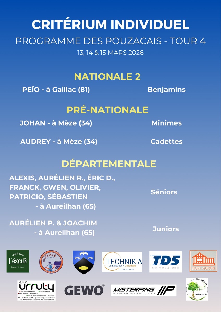 A Aureilhan (65), Alexis, Aurélien P, Aurélien R, Eric D, Franck, Gwenael, Joachim, Olivier, Patricio et Sébastien seront dans les différents niveaux de départementale. Plus d'inscrits à venir.