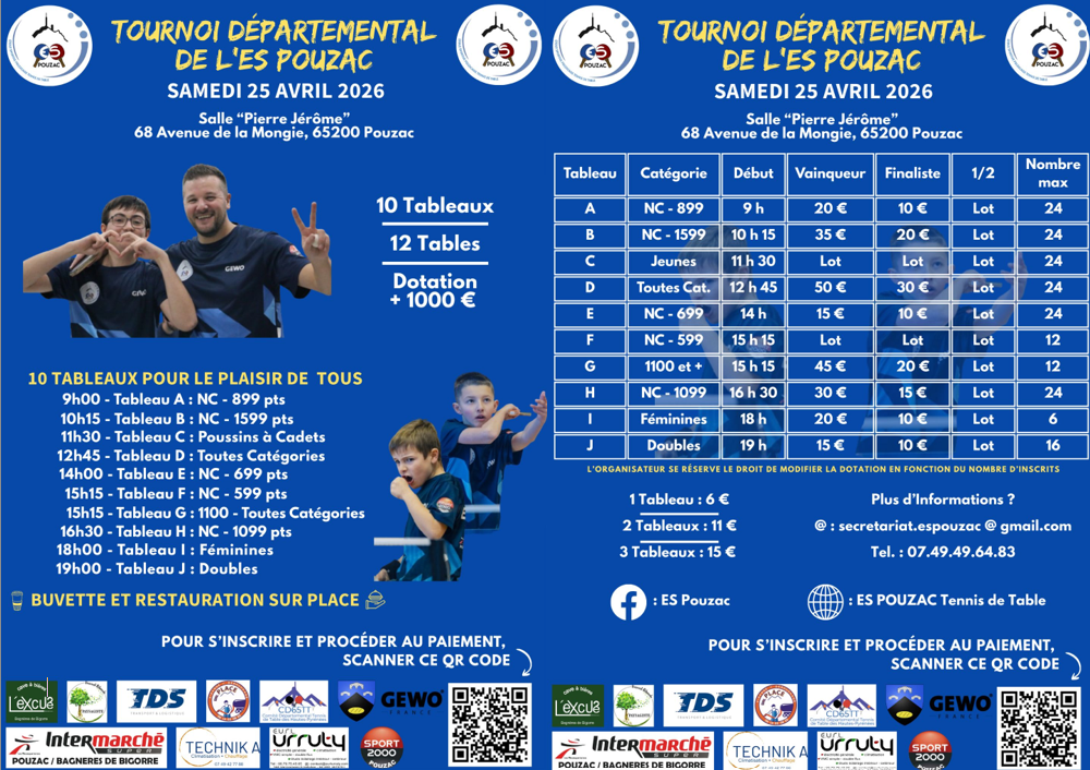 Pouzac va résonner au rythme des balles de tennis de table le samedi 25 avril prochain !