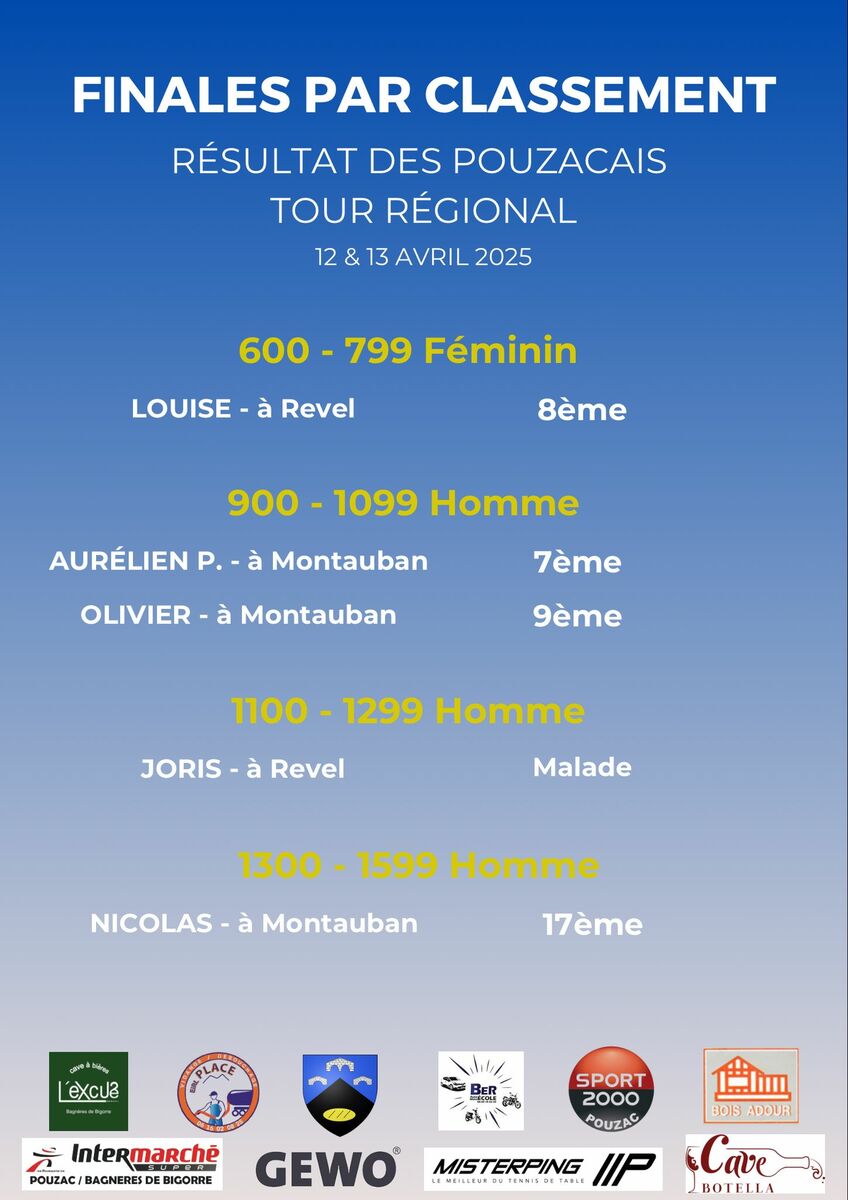 Plusieurs pouzacais évoluaient ce week-end au niveau régional aux finales par classement.